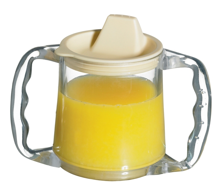 Mug has a wide stable base with two large contoured and angled handles, which enables it to be held in the correct position for drinking.