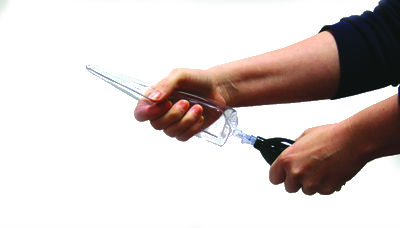 Easy to pull through clasped hand when deflated with the wand and gradually inflates with manual inflator bulb