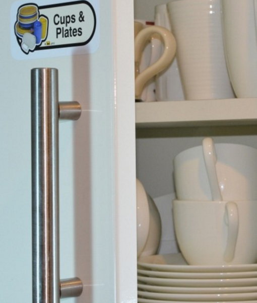 Supplied in a folder, this product uses an ingenious, re-useable adhesive allowing the labels to be stored, removed or replaced as required. Even when someone has lived in familiar surroundings of their own for many years, they will find it ever more difficult to remember where things are.